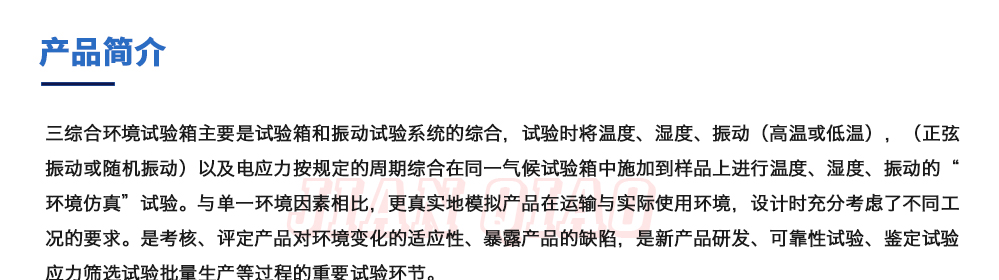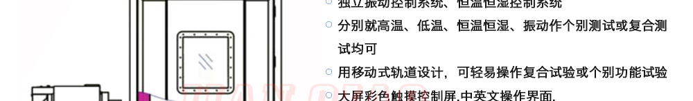 用途:三綜合環境試驗箱主要是試驗箱和振動試驗系統的綜合,試驗時將溫度、濕度、振動(高溫或低溫),(正弦振動或隨機振動)以及電應力按規定的周期綜合在同一氣候試驗箱中施加到