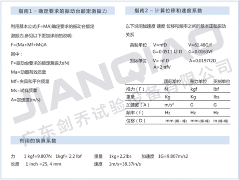 振動試驗作為航空、航天、國防、汽車、電子等行業(yè)進行產(chǎn)品結構的耐振性、可靠性和完好性測試的重要工具,大多數(shù)企業(yè)在選擇振動試驗臺時,搞不明白推力、加速度與試驗品重量之間的關系,這也導致選型困難,買錯設備的情況發(fā)生,下面由廣東劍喬小編給大家普及一下: